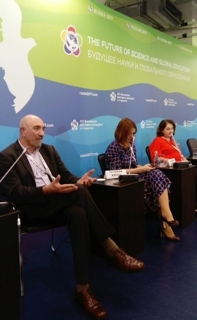 На XIX Всемирном фестивале молодёжи и студентов Федеральный институт развития образования (ФИРО), как партнер Дискуссионной программы по научно-образовательному тематическому направлению «Будущее науки и глобальное образование», провел сессию «Траектории развития исследовательских и технологических проектов для молодежи в России и за рубежом: перспективы участия», в рамках которой, в роли спикеров приняли участие: